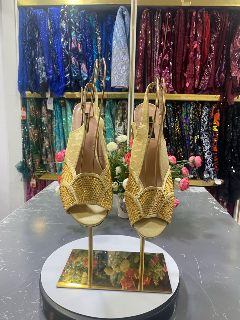 This refers to embellishments made with rhinestones, crystals, or similar decorative stones. “Stoned” sandals are often sparkly and glamorous.