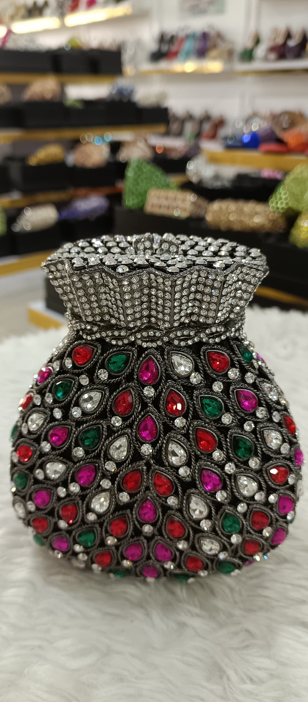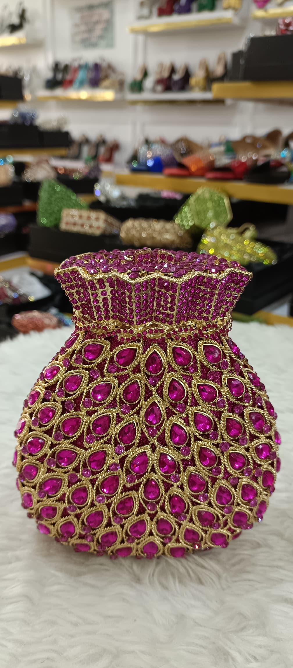 The “Swarovski purse bottle shape” refers to evening bags and clutches designed to mimic the form of bottles—such as champagne, wine, or perfume bottles—while being adorned with Swarovski crystals or similar high-quality embellishments. These novelty bags are celebrated for their whimsical charm and are often chosen for their statement-making appeal at formal events, parties, or weddings.
