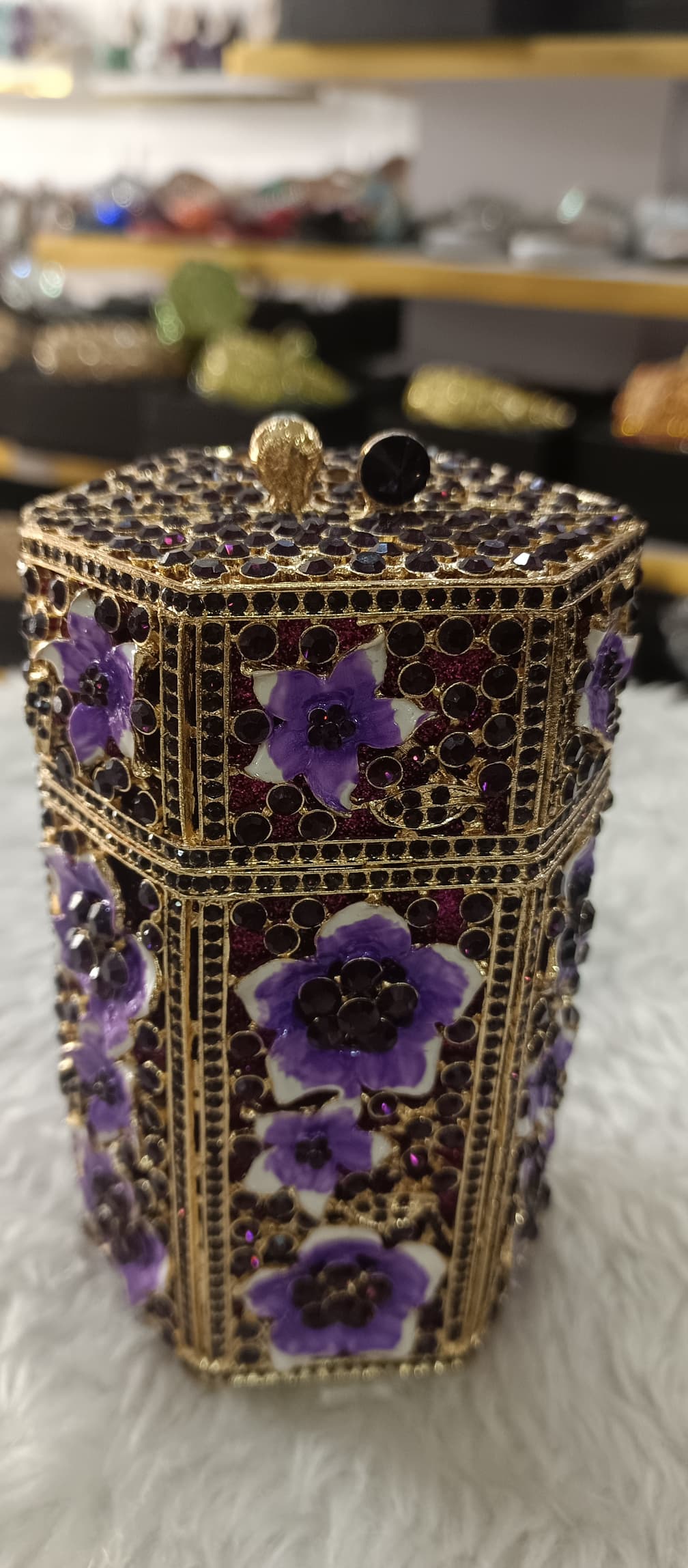 Be the first to review “SWAROVSKI ROLL SHORT FLOWER PURSE”